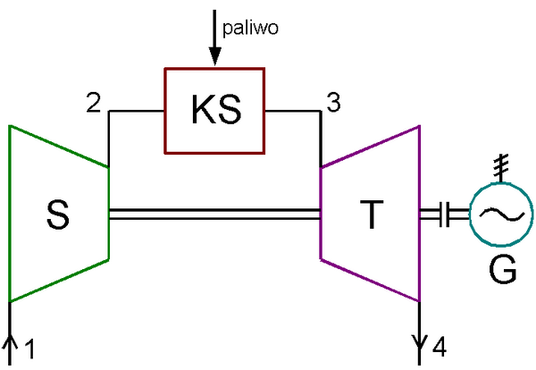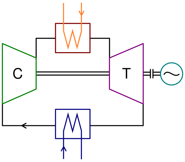 С учётом отличий реальных адиабатических процессов расширения и сжатия от изоэнтропических, строится реальный цикл Брайтона (1—2p—3—4p—1 на T-S диаграмме)