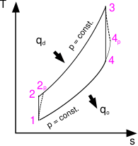 - 4—1 Изобарическое сжатие (отвод теплоты).