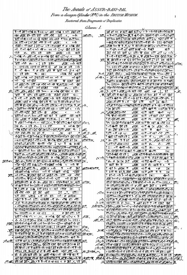 В цилиндре подробно описаны девять военных кампаний Ашшурбанапала[4][2][3]. Содержание цилиндра перечислено следующим образом[5]: