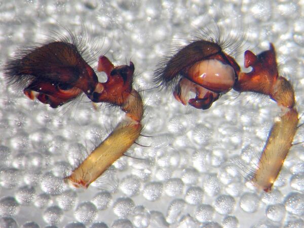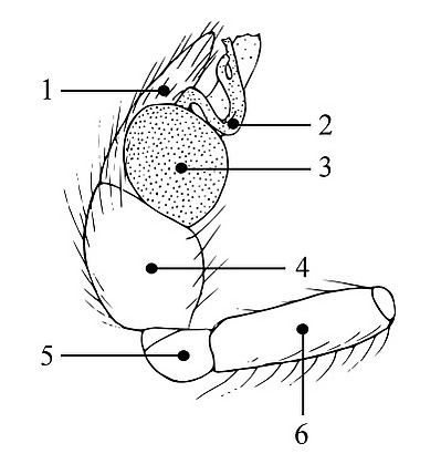 Преобразование последнего членика (тарсуса) педипальп происходит в ходе линьки, предшествующей половому созреванию самца[1]. Образующийся при этом орган состоит в общем случае из трёх частей: цимбиума, бульбуса и эмболюса. Внутри грушевидного бульбуса находится спирально закрученный семенной резервуар. Наружу семенной резервуар открывается через семяизвергательный канал эмболюса, представляющего собой тонкий выводной придаток. Часто цимбиум и прилегающие членики педипальпы (голень и пателла) несут на поверхности выросты (апофизы), которые выполняют различные функции во время полового акта, в частности, способствуют прочному закреплению в половом отверстии[1]. На цимбиуме в специальной выемке (alveolus) располагается собственно копулятивный орган, проксимальный отдел которого представлен гематодохой (hematodocha), а дистальный - луковицей, или бульбусом (bulbus). Гематодоха - это тонкостенный мембранозный мешок, полость которого сообщается с полостью тела. При копуляции этот мешок заполняется гемолимфой и разворачивается вместе с бульбусом и его придатками. Бульбус сидит на вершине гематодохи и в покое располагается внутри выемки цимбиума. Бульбус последнего членика пальпы самцов заканчивается специальным стилетом, или эмболюсом (emboli), который выполняет функцию пениса.[2]