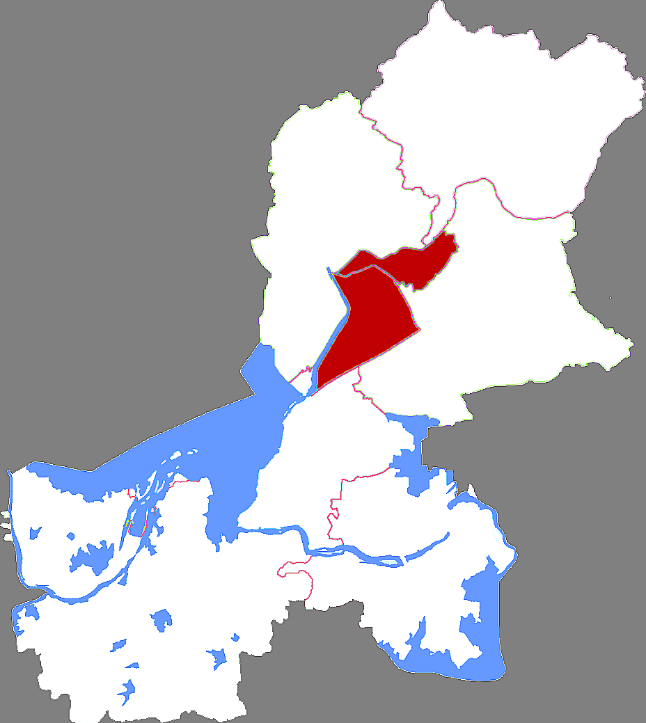 Район делится на 11 уличных комитетов, 3 посёлка и 5 волостей.