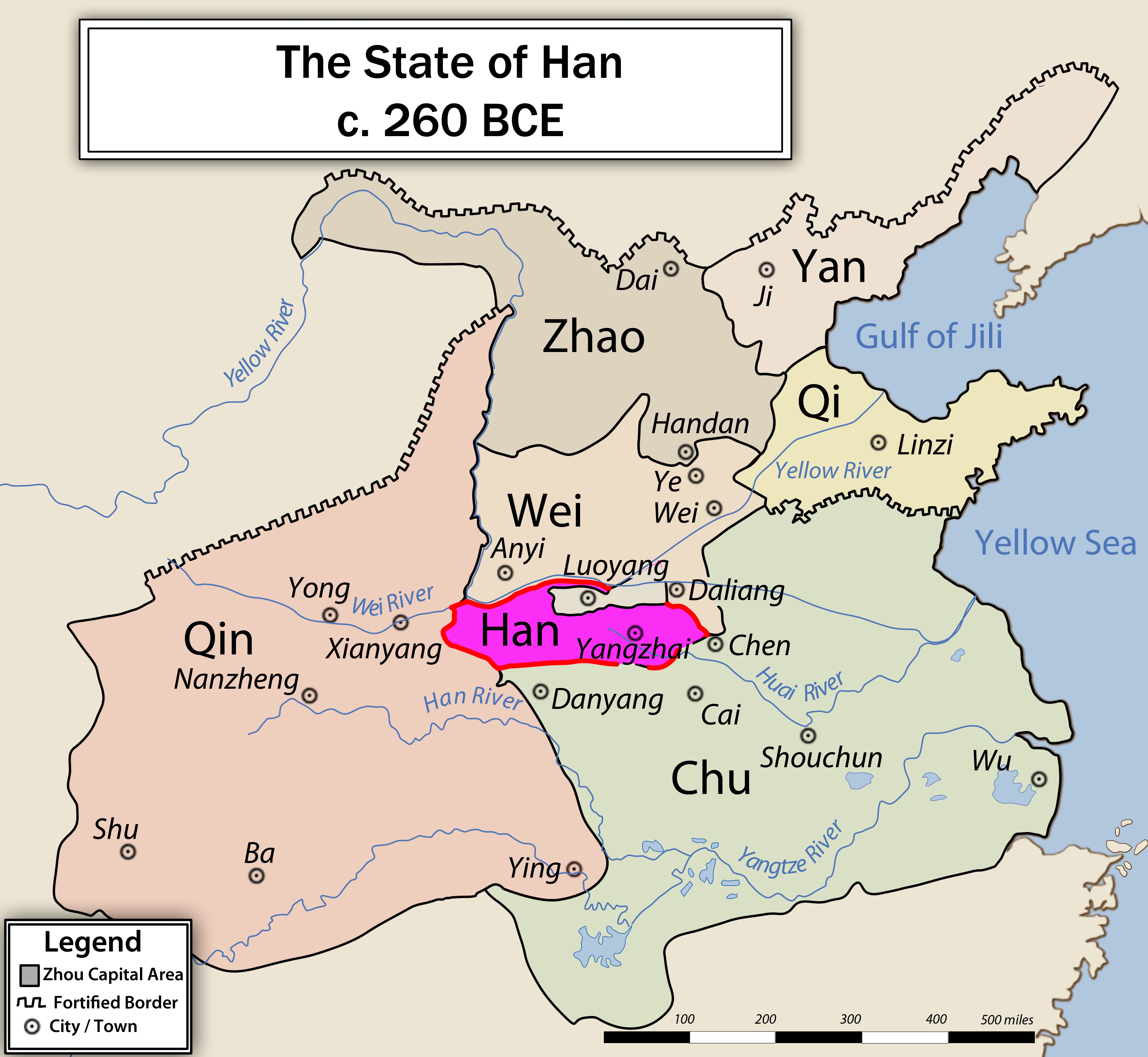 - 293 до н. э. состоялась крупная битва при Ицюэ, в которой царство Цинь одержало победу над соединёнными силами Хань и Вэй. После этой битвы Вэй и Хань заметно ослабли, открыв путь к доминированию царства Цинь.