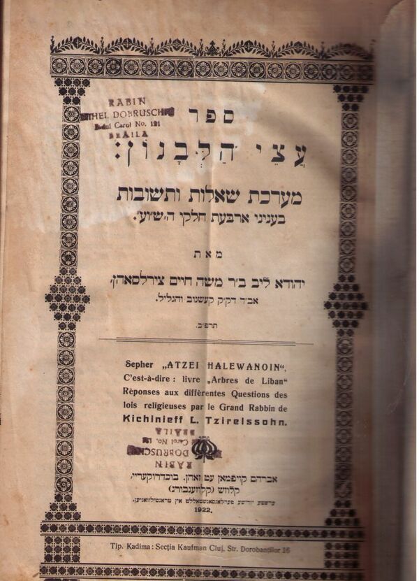 - עצי הלבנון («Ацей hаЛеванон», респонсы на иврите и арамейском языках). — Клойзенбург (Клуж), 1922.