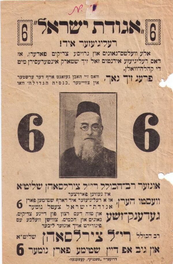 В 1912 году стал одним из основателей всемирного ортодоксального движения «Агудас Исроэл» (Союз Израиля), был организатором учредительного конгресса движения в том же году в Катовице (Пруссия). Создал в Кишинёве бессарабское отделение «Агудас Исроэл» (с 1920 года — автономное отделение), которым руководил почти до конца жизни. В 1923 и 1929 годах председательствовал на Первом и Втором всемирных конгрессах движения (кнесия гедола) в Вене; принял участие в работе Третьего конгресса в 1937 году; входил в президиум центрального исполнительного комитета и в так называемый совет мудрецов движения. На конгрессе 1923 года как председательствующий поддержал предложение люблинского раввина Меера Шапиро о введении синхронного годичного цикла чтения Талмуда по всему миру (даф йоми), принятого по сей день.