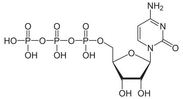 | Сокращения | cytidine 5'-(tetrahydrogen triphosphate); cytidine triphosphate; ЦТФ; CTP; сytidine-5'-triphosphate; 2(1H)-Pyrimidinone; 4-amino-1-[5-O-[hydroxy[[hydroxy(phosphonooxy)phosphinyl]oxy] phosphinyl]-.beta.-D-ribofuranosyl]- |