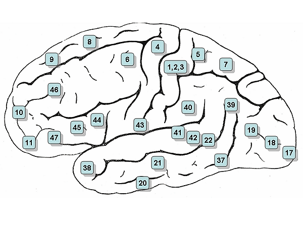 - Brodmann areas Brodmann areas of cortex involved in language.