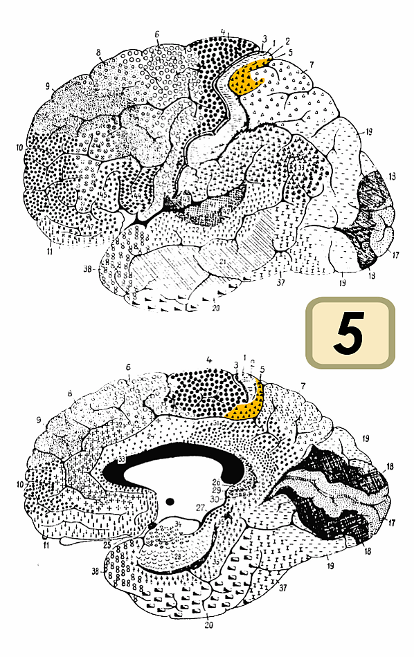 Особенности гистологического строения 5-го цитоархитектонического поля Бродмана: