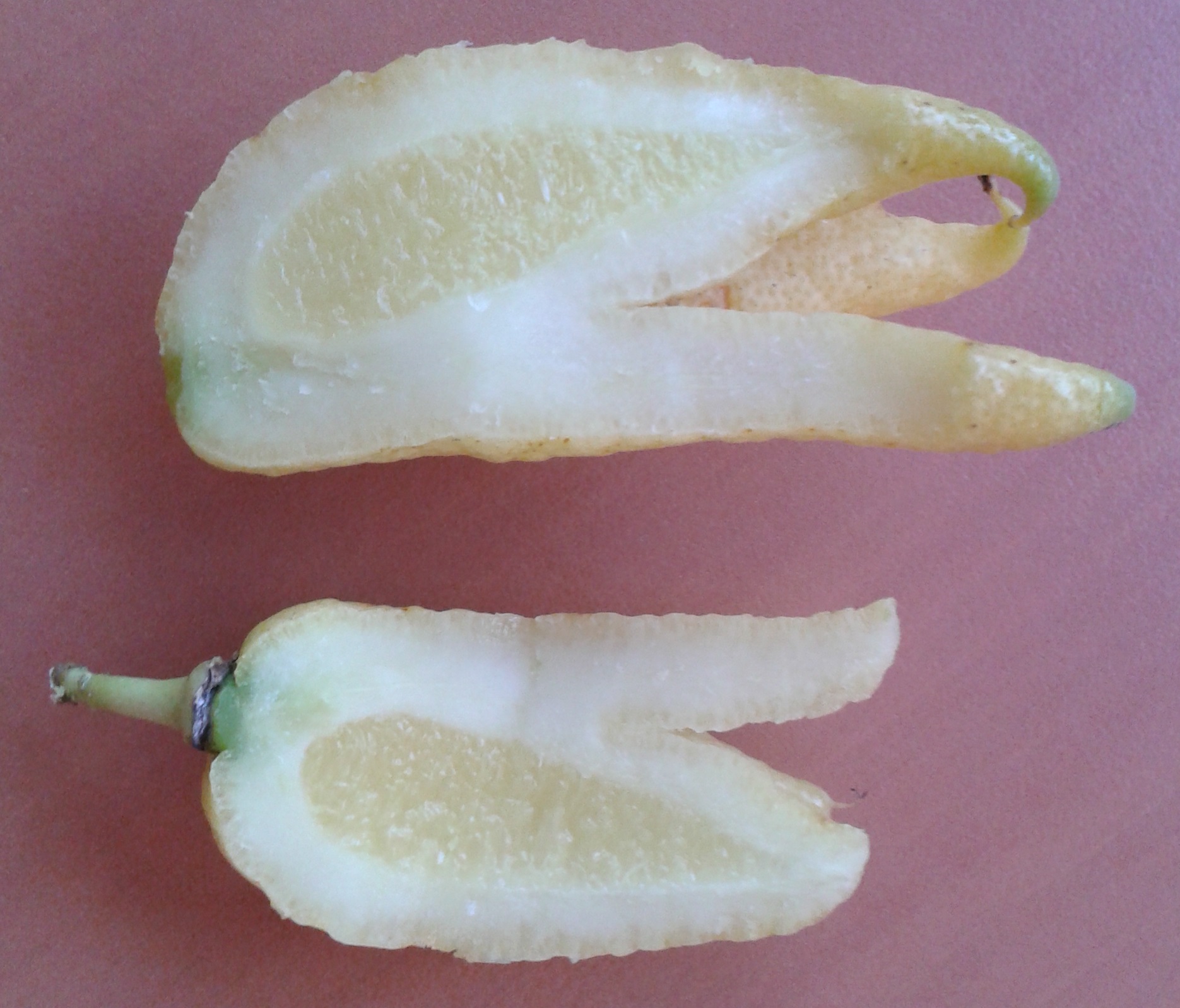 Отличается многократно разделёнными плодами, образующими отростки, напоминающие пальцы, которые остаются не сросшимися, разделёнными практически до самого основания, что делает плод похожим на руку человека. В плодах почти полностью отсутствует мякоть. Считается, что аномальное развитие плодов связано с генетическим дефектом.