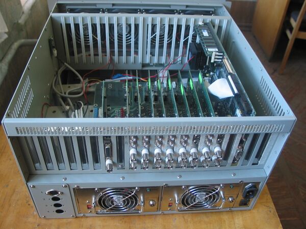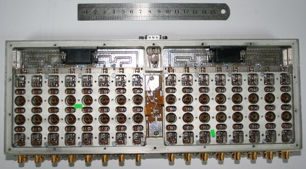 Технологии первого из них связаны с использованием одноканальных АЦП и реализацией цифровой обработки сигналов в приёмных каналах с помощью отдельно взятых микросхем сумматоров, регистров и т. п.[10] Примером такого подхода является экспериментальный образец 8-канальной ЦАР, созданный в Военной академии ПВО Сухопутных войск имени Маршала Советского Союза Василевского А. М. в 1989—1992 годах (см. фото).