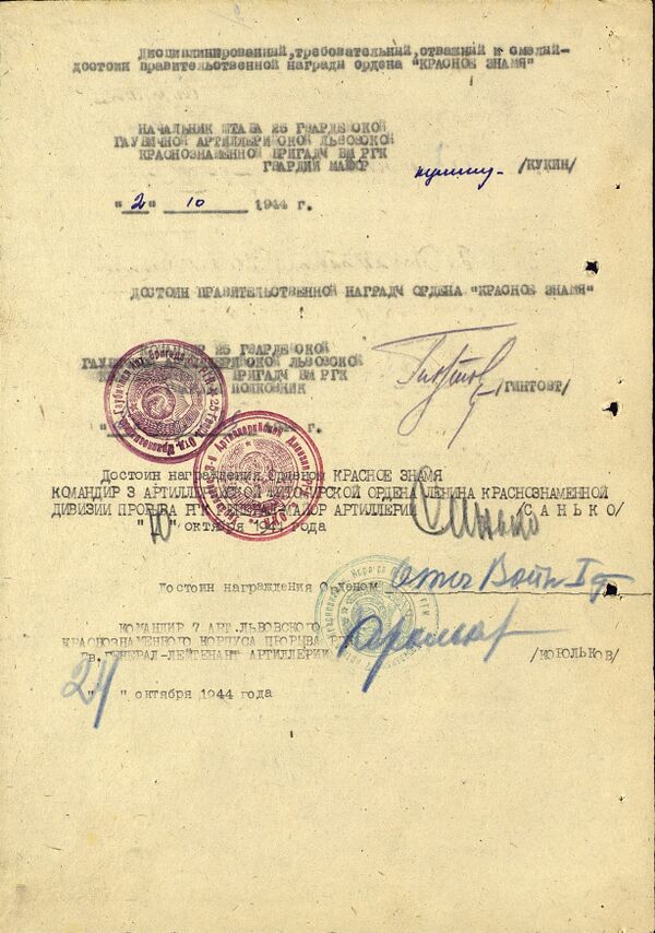 - Центральный Архив Министерства Обороны РФ. Наградные листы: опись 690306, дело 640, лист 49 и дело 1333, лист 164.