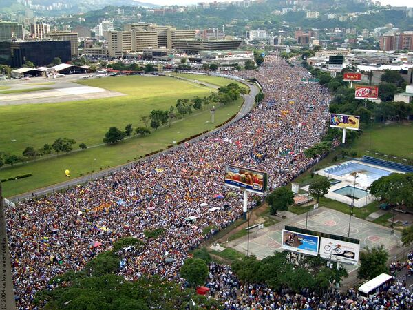 С принятием конституции 1999 года стало возможным проведение референдума о досрочной отставке президента. Оппозиция воспользовалась этой возможностью, и в августе 2004 года референдум состоялся. При 70-процентной явке 59 процентов избирателей проголосовали за оставление Чавеса в должности[141][166]. Тогда его поддержал практически только малообеспеченный рабочий класс, в отличие от большей части среднего класса, недовольного значительным левым сдвигом курса лидера Венесуэлы[167].