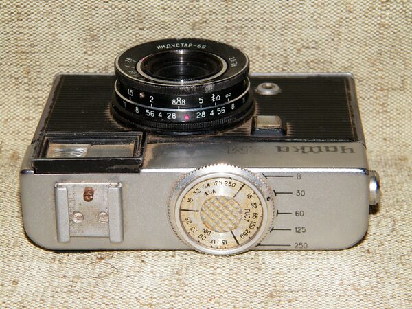 - Спусковая кнопка на передней панели камеры, резьба под спусковой тросик отсутствует.