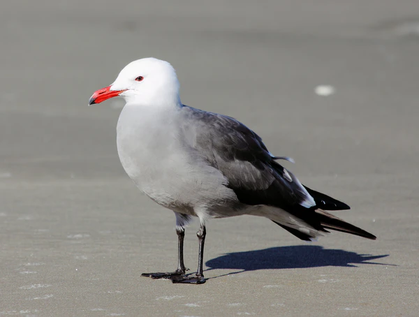 Птица средних размеров с белой головой и серым телом. Среди всех чаек Северной Америки такой окрас встречается только у чайки Хеерманна[4].