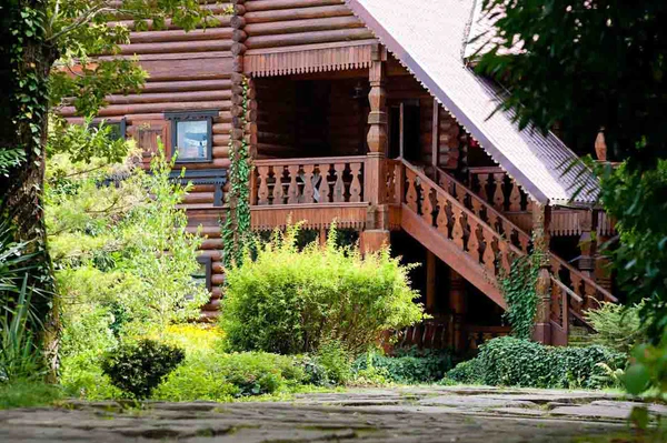 Главный дом представляет собой деревянный сруб, поставленный без единого гвоздя. Дом состоит из двух частей — гостевой и хозяйской, соединенных внутренним крытым двором. Все выдержано в стиле русской постройки, кроме потолков в большом каминном зале и во внутреннем дворе, а также самого камина. Они сделаны в гуцульском стиле и очень украшают дом, в русской постройке — это просто бревенчатый свод. Во внутреннем дворе Дома представлены точные уменьшенные копии музея русского зодчества Кижи, созданные мастером Даньчаковым.