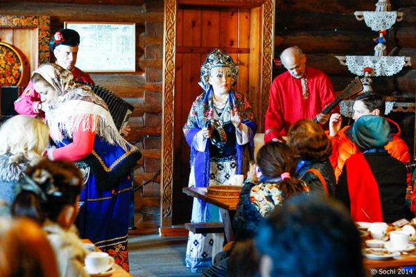 История чайных домиков началась в 1967 году, когда был построен первый сруб татарскими мастерами. Располагались первые два чайных домика значительно ближе к плантации самого северного в мире чая, произрастающего на склонах Кавказских гор в окрестностях Сочи. Позже сохранилась только кухня, которая обслуживала первые два чайных домика, тогда как сами они были разобраны в начале 2000-х годов по «старости». Главный дом начал строиться в 1977 году, а действовать — с 14 июля 1979 года. Построен по проекту архитектора Ю. Л. Шварцбрейма и соответствует дореволюционной постройке дома зажиточного купца Средней России и Южной Сибири. Создавался для приема иностранных гостей, чтобы показать им самобытную русскую культуру и познакомить с русским промыслом. Строили Дом два с половиной года семья украинцев-гуцулов из прикарпатского города Яремче — отец и трое сыновей. Ландшафтным оформлением территории занимался С. И. Венчагов, и оно почти полностью сохранено в первозданном виде.