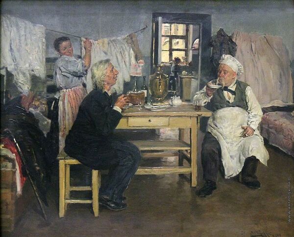 «В монастырской гостинице». Картина работы А. И. Корзухина, 1882. Государственная Третьяковская галерея