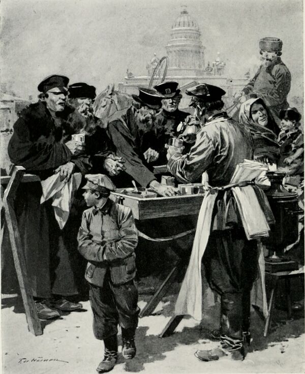 Чай москвичи пили утром, в полдень и обязательно в четыре часа. В это время в Москве в каждом доме кипели самовары. Чайные и трактиры были полны, и жизнь на время замирала. Пили его вечером; пили, когда взгрустнется; пили и от нечего делать, и «просто так». Пили с молоком, с лимоном, с вареньем, а главное — с удовольствием, причем москвич любил чай крепкий, настоистый и горячий, чтобы губы жег. От жидкого чая, «сквозь который всю Москву видать», москвич деликатно отказывался, и терпеть не мог пить его из чайника… Если москвич, выпив десяток стаканов, отставлял стакан в сторону, это не значило ещё, что он напился: так он делал передышку. А вот когда он, опрокинув стакан вверх дном, клал на него остаток сахара и благодарил, это означало, что с чаепитием покончено и никакие уж тут уговоры не помогут.