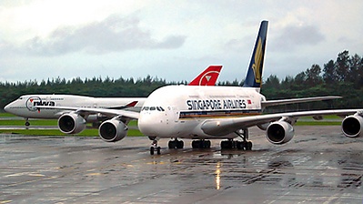Для приёма Airbus A380 в аэропорту были проведены мероприятия стоимостью 60 млн сингапурских долларов. Было построено 19 гейтов для приёма двухпалубного самолёта, восемь из них — в Терминале 3. Были увеличены багажные ленты, ВПП и рулёжные дорожки, были построены две стоянки для грузовых самолётов и две удалённые стоянки для самолётов. Были приняты меры по обеспечению дополнительной безопасности от возможных террористов. 11 ноября 2005 года аэропорт стал первым за пределами Европы, в котором совершил посадку A380 с целью тестирования возможностей аэропорта к приёму этого самолёта, также впервые в мире был использован тройной пассажирский трап для посадки в самолёт.