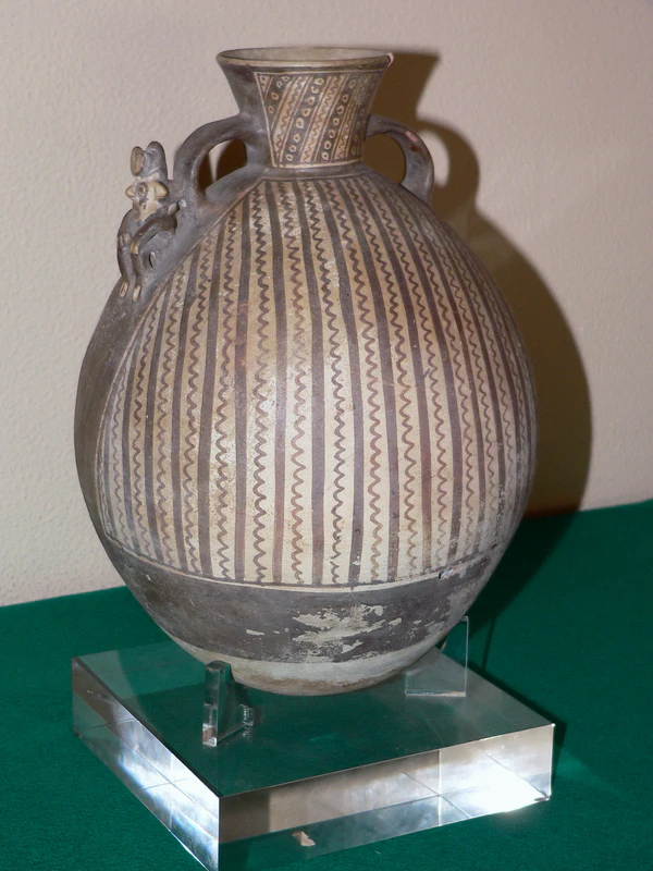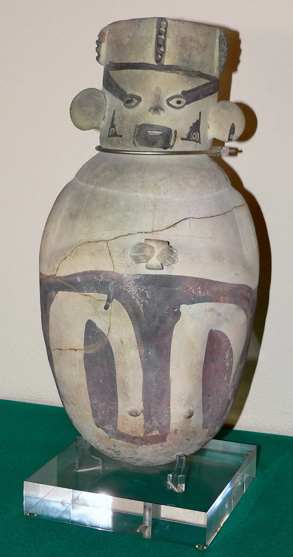 Существовали два характерных типа погребения. Одно из них — для высшего класса, для высокопоставленных вельмож, с глинобитными камерами прямоугольного или квадратного сечения, с крышей и стенами из тростника, уходящими на несколько метров в землю, и погребальной утварью — керамическими изделиями, тканями, золотыми и серебряными украшениями. В погребальную камеру вели ступеньки.