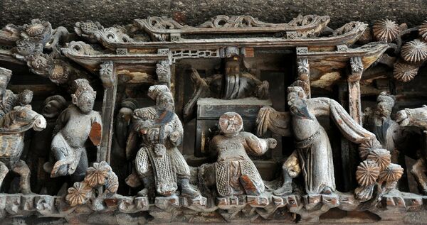 Чаошаньская резьба по дереву (также известна как резьба Чаочжоу) зародилась ещё в эпоху династии Тан и получила своё дальнейшее развитие в эпоху династий Сун, Мин и Цин. Богатые чаошаньцы издревле украшали свои храмы, родовые залы и дома в восточной Гуандуне, Гонконге и странах Юго-Восточной Азии изящной резьбой на религиозные, мифические, исторические и бытовые мотивы. Особенно часто украшались горизонтальные перемычки дверей и окон; арки, колонны, капители и потолки внутренних галерей и парадных коридоров. Также тонкой резьбой украшали бытовые изделия — ставни, напольные ширмы, чайные шкафы, домашние алтари, столы, кровати и светильники. Для внутренних интерьеров чаошаньские мастера как правило использовали пихту, а для мебели — камфору; нередко элементы гравировки покрывались лаком, краской или сусальным золотом[65][66][67].