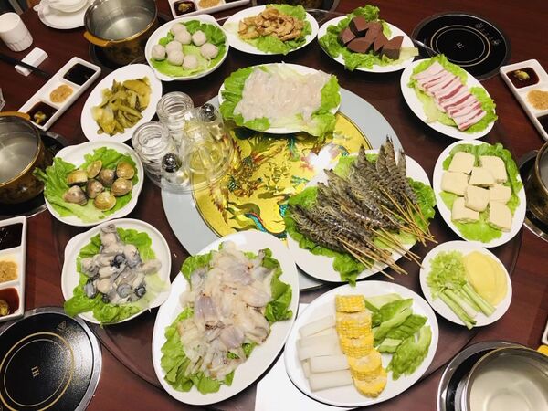 На торжественных банкетах подают суп из акульих плавников, суп из птичьих гнёзд, омаров, парную рыбу, жаренных молочных поросят, тушеных гусей, красиво нарезанные овощи и десерты. Среди классических блюд чаошаньской кухни выделяются лапша ми-пок (в том числе суп с лапшой, лапша со свиным фаршем и рыбными шариками)[78]; свиные рёбра в бульоне ба-кук-тэ[79]; димсам из обжаренных кубиков редьки и рисовой муки чай-тоу-квай; парные рисовые тарталетки с маринованной редькой чуй-куэ[80]; ролы с овощами, колбасой и тофу попия; устричный омлет и жареная курица с сычуаньским перцем[81].