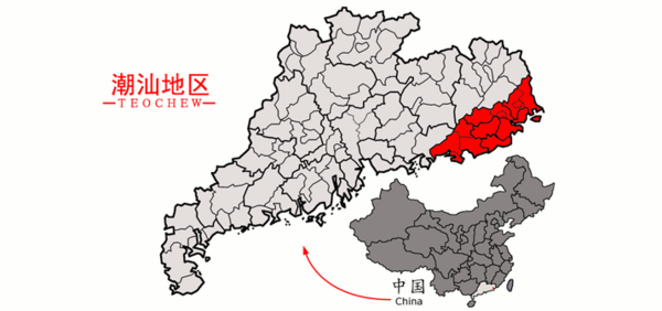 Историческая культурно-языковая область Чаошань (Chaoshan, Chiushan или Teoswa) расположена в восточной части китайской провинции Гуандун. Она охватывает прибрежные округа Чаочжоу, Шаньтоу и Цзеян, а также восточную часть округа Шаньвэй.