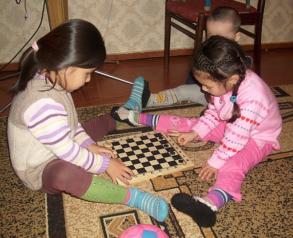 - Башни: шашки ставятся одна на другую в столбик по три (два столбика по краям) и один в середине по две.