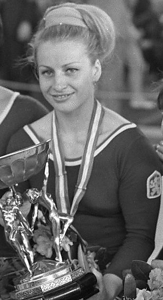 Вера Ча́славска[10] (чеш. Věra Čáslavská, 3 мая 1942, Прага, Протекторат Богемии и Моравии — 30 августа 2016, Прага, Чехия) — чехословацкая гимнастка, 7-кратная олимпийская чемпионка, 4-кратная чемпионка мира, 10-кратная чемпионка Европы и Чехословакии. Обладательница наибольшего числа золотых олимпийских наград в истории Чехословакии и Чехии.