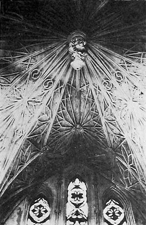 Зал перекрыт зеркальным сводом, насыщенным орнаментом из тонких лепных ребер. Скульптурные изображения евангелистов (не сохранились) располагались в угловых арочных нишах. Арочные окна и слуховые окна с переплетами геометрического рисунка, которые были заполнены цветными витражами. Под часовней находится склеп- усыпальница, куда сходы ведут в центре зала.Шаблон:Зноскі