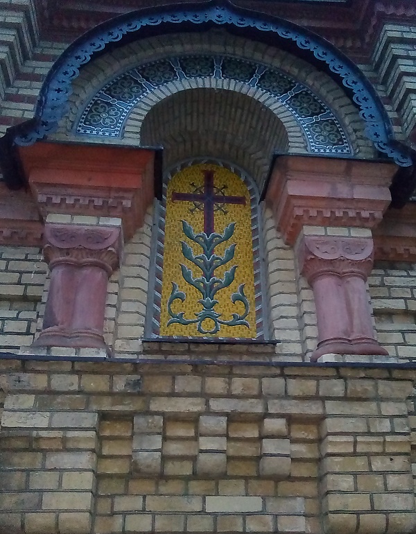 Усыпальница напоминает миниатюрный сказочный замок, изящный и хрупкий. Но архитектор, несмотря на небольшой масштаб, создал полноценную по композиции постройку с артистично выдержанной стилистикой[1]. План часовни — квадрат[1] площадью 30 м², объёмная композиция выдержана в духе пятиглавых шатровых церквей[1]. На южном фасаде пристроен вход с лестницей и арочным порталом. Особенностью постройки является декоративное убранство. Пустотелые, причудливые по форме керамические колонны, скульптурные кокошники, розетки, карнизные пояса, позолоченные купола и цветная керамика выполнены на высоком художественном уровне[1]. Особую красочность фасадам придают майоликовые плитки, украшенные растительным орнаментом[1]. Декор принадлежит местным мастерам, работавшим под руководством художника С. Садикова. Это были полихромные росписи, в которых очевидно были видны древнерусские мотивы: переплетаются цветы, листья, ростки и прорастает восьмиконечный крест. Садиков также руководил позолотными работами в погребальном склепе[2].