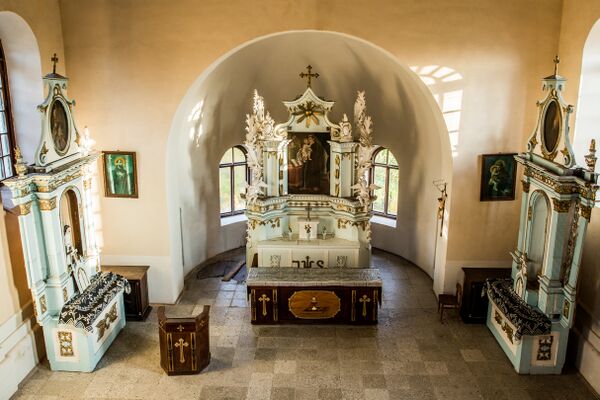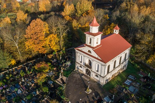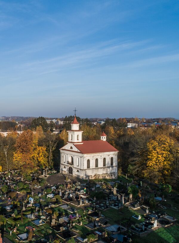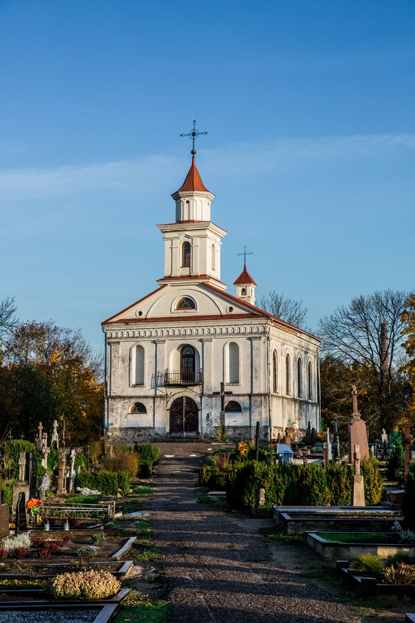 В часовне прослеживаются черты как романтического, так и исторического стиля. Часовни, предназначенные для отпевания и захоронения усопших, получили распространение в Литве во времена романтизма. Часовня продолговатого прямоугольного плана с расположенной ниже полукруглой апсидой, цельнообъемная, с башней в южной части, обращенной в сторону кладбищенских ворот. Размер часовни — 20,6×12,4 м, высота — 12 м (до верха башни — 23,8 м). Отличается наличием башни — редкого, нехарактерного для композиции часовен элемента.