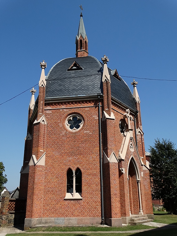 Здание имеет шестигранную форму с куполообразной крышей, увенчанной готической башней. Стены сложены из красного кирпича. Внутри находится алтарь высотой 410 см, над которым расположена полихромная и позолоченная скульптура святого Иосифа, высотой 130 см. По периметру зала устроена галерея, поддерживаемая рядом колонн. Пол выложен керамической плиткой с орнаментом[1][2]. Под часовней находится склеп, где похоронен граф Райнольд Тизенгаузен (1830—1880)[5].