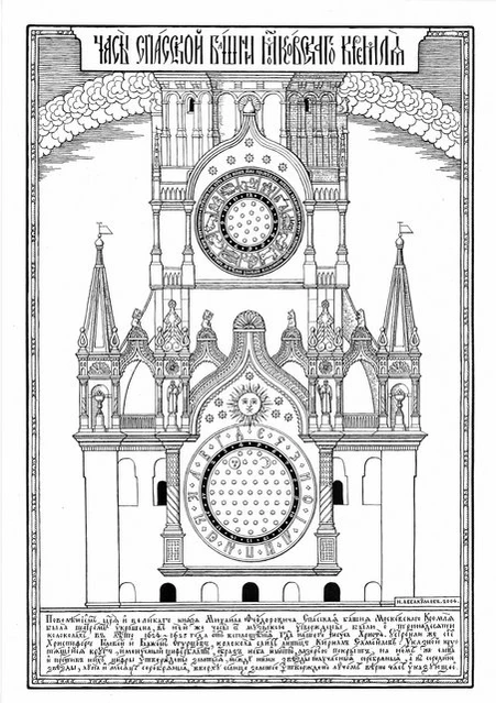По сведениям Павла Алеппского, к середине XVII века свои часы имелись во всех более или менее значительных монастырях «Новгорода, Малой России и Московской земли», включая, например, звенигородский Саввин, валдайский Иверский и киевский Печерский. Около 1666 года тихвинец Пётр Печёнкин устроил часы на колокольне тамошнего Введенского монастыря; есть сведения и о других русских мастерах[5].