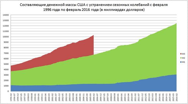 Данные по агрегату М3 заканчиваются в марте 2006 года, так как Федеральная Резервная Система прекратила публиковать эти данные мотивируя тем, что стоимость сбора данных весьма существенная, а получаемая информация не значительна. Остальные три денежных агрегата будут продолжать публиковаться в деталях и дальше[46].
