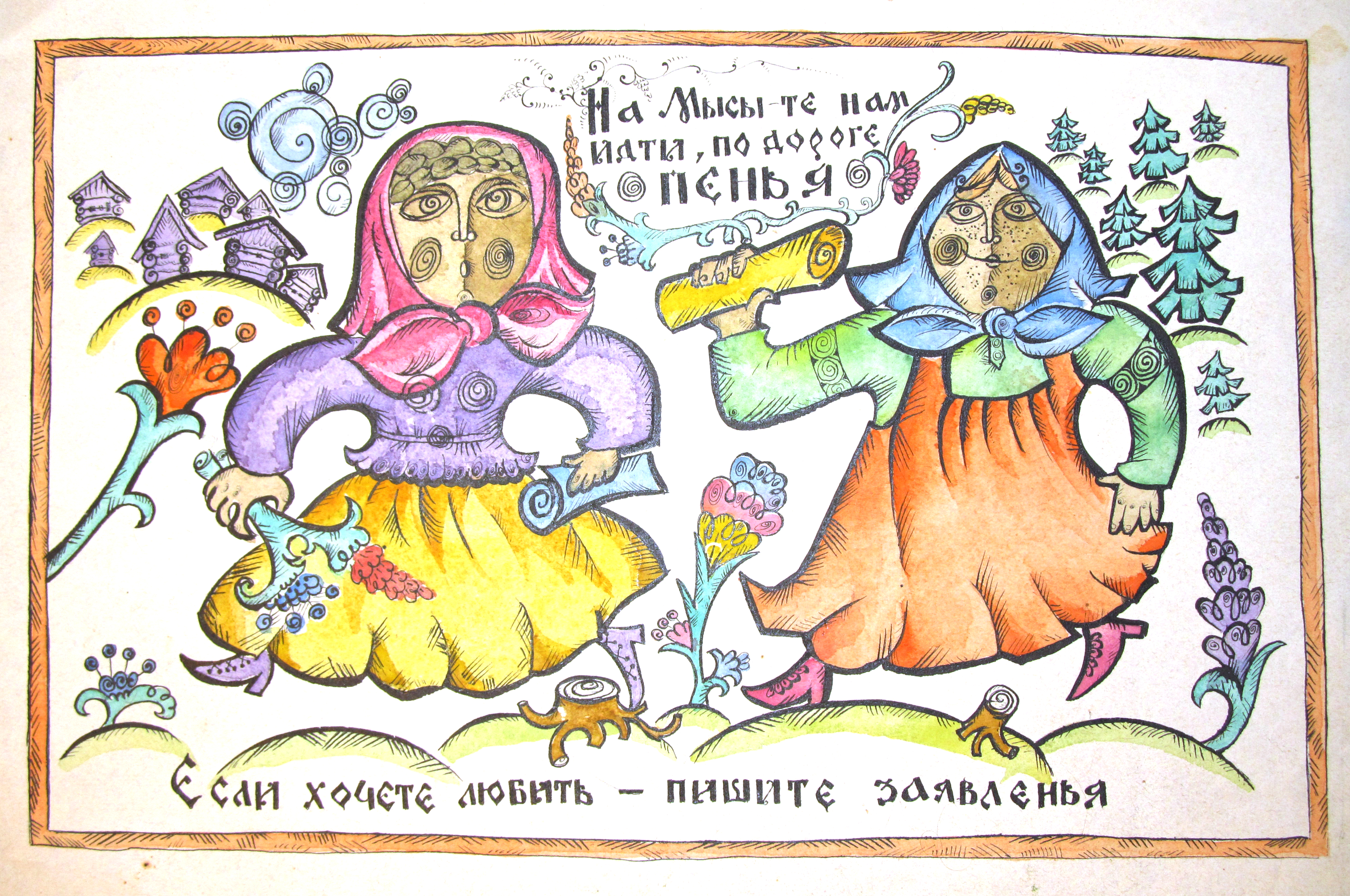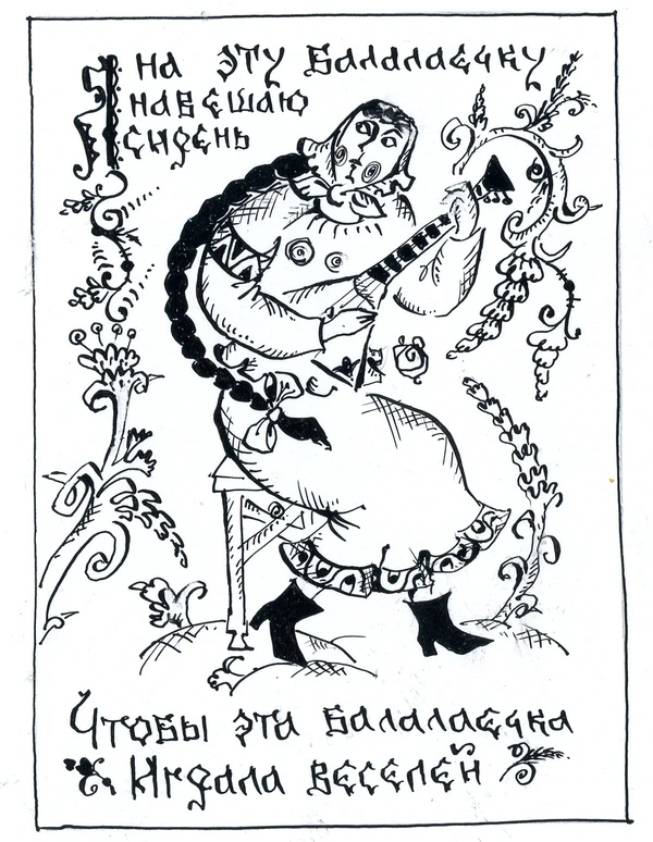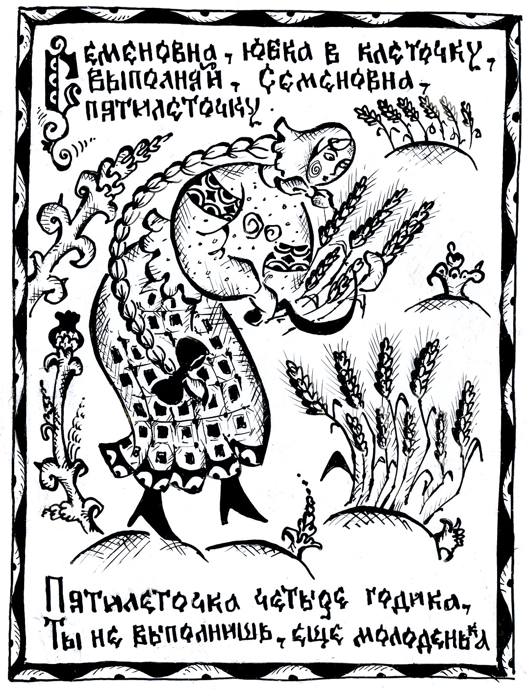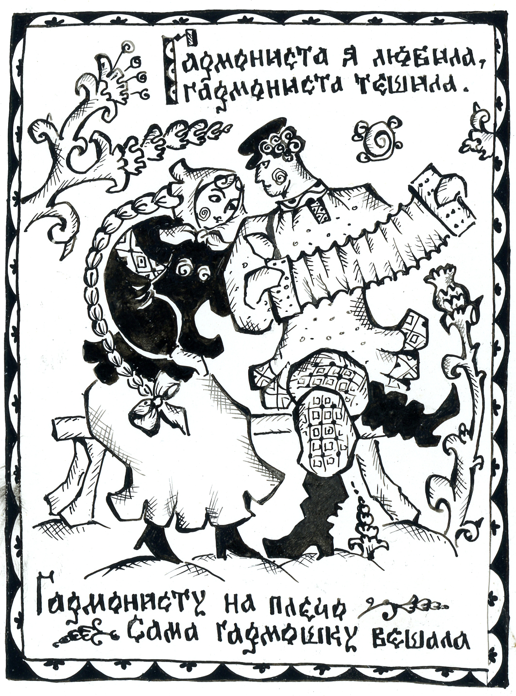 Примеры частушек на различные темы (илл. — графика А. Г. Вороны)
