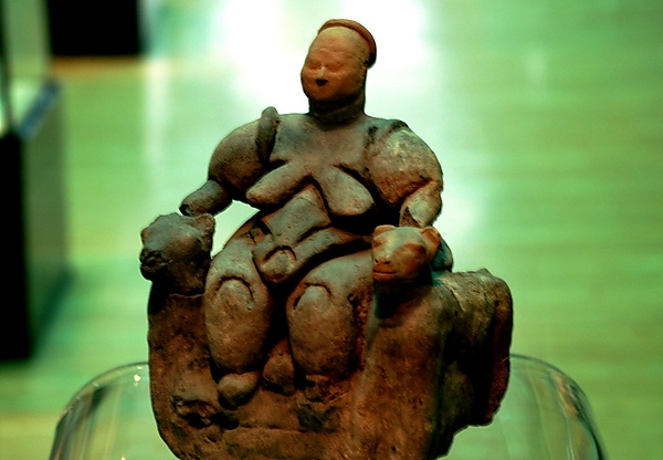 Статуэтки из Чатал-Хююка с тучными женщинами были интерпретированы Джеймсом Меллаартом как изображения Богини-матери («Великая мать»). Так как многие находки подобных статуэток на просторах Европы ассоциировались с матриархальным строем, то и Чатал-Хююк стали считать матриархальным. Дальше всех пошла археолог Мария Гимбутас, она выдвинула теорию, что общество Чатал-Хююка было типично неолитическим («Старая Европа»): матристическое (с абсолютной властью женщины в семье), ориентированное на равенство[15]. Такое общество было уничтожено вторжением патриархальных, иерархическо-ориентированных, воинственных людей, которых Гимбутас идентифицировала как представителей индоевропейской курганной культуры.