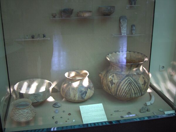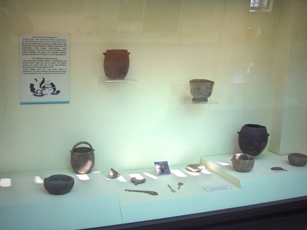 Также использовался кремень: были найдены два кремнёвых ножа с ручками из резной кости. Это позволяет предположить, что местная община специализировалась в горном деле и активно развивала культуру изготовления изделий из камня. Кроме того, были обнаружены фрагменты тканей[22], деревянные чашки, бусы из камня, кости и глины, а также корзины и керамзит, которые находят только в старых слоях (применяли для приготовления пищи)[23].