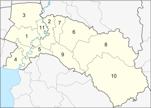 Общая площадь провинции составляет 5351,0 км², административно она делится на 11 районов (ампхое):