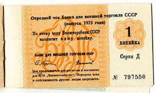 Операции с отрезными чеками Внешторгбанка СССР в рублях