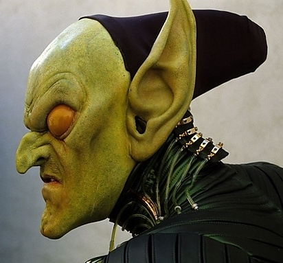 Amalgamated Dynamics занималась созданием первоначального головного убора Зелёного гоблина, который задумывался как аниматронная маска. Дизайн маски больше походил на версию из первоисточника, в отличие от утверждённого варианта, и позволял носителю передать полный спектр эмоций. Тем не менее, создатели отказались от маски ещё до выбора актёра на роль Гоблина. Поскольку аниматронная маска показалась «слишком жуткой» представителям Sony и требовала больших технических затрат, вместо неё был изготовлен статический шлем[94][95][96]. По мнению Дефо создатели фильма намеревались придать персонажу более пугающий, нежели нелепый вид, что привело к появлению передовой брони «Oscorp». В то же время аниматронная «маска в стилистике Хэллоуина» актёру показалась «глупой»[41]. Кроме того, Дефо хотел более гибкий костюм, чтобы у него была возможность сесть на шпагат[97].