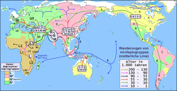 Человек разумный (Homo sapiens) появился в Африке около 200 тыс. лет назад. Первая волна его миграций за пределы Африки произошла около 120—130 тыс. лет назад, когда небольшие группы людей достигли Ближнего Востока. Однако эти ранние мигранты не оставили значительного следа в генетическом пуле современных людей.