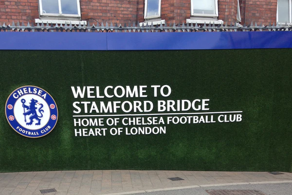 Футбольный клуб «Челси» был основан 10 марта 1905 года в пабе «Восходящее солнце» (ныне известен как «Мясной крюк»), напротив нынешнего главного входа на стадион, смотрящего на Фулем-роуд. Поскольку в районе уже существовала команда «Фулхэм», было выбрано название соседнего района — столичного боро Челси; при этом рассматривались такие варианты, как ФК «Лондон», «Кенсингтон» и «Стэмфорд Бридж»[7].