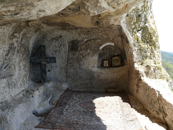 Главным храмом исследователь считал большую естественную пещеру длиной более 30 м, в восточной части которой вырублена апсида. Он также подробно изучил церковь в третьем ярусе, аналоги которой Бертье-Делагард видел в малом храме Шулдана и церкви скита на станции Инкерман-1. Опубликовал он и сведения о церкви в четвёртом ярусе, правда, без архитектурных обмеров, а также о культовой пещере в пятом ярусе, которую определил как маленькую часовню или жильё схимника.
