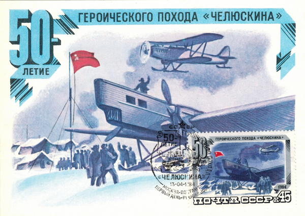 к 50-летию дрейфа в 1984 году Почтой СССР была выпущена серия почтовых открыток и марок.