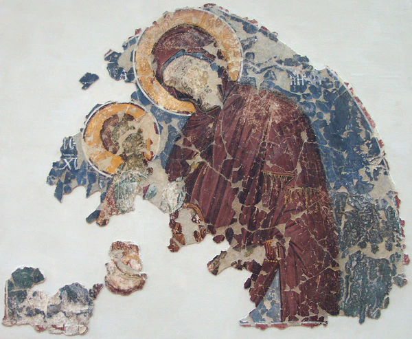 В ходе археологических исследований 2004 года Южно-Крымской экспедицией Государственного Эрмитажа была сделана необычная не только для Крыма, но и для всего Причерноморского региона находка — клад, состоящий из остатков фрески. Обнаруженная фреска находилась в восточном углу двора барбакана башни № 2 генуэзской крепости Чембало. Небольшая ямка была плотно заполнена фрагментами настенной живописи. В процессе реставрации на глазах исследователей рождалось чудо — стало понятно, что это изображение Богоматери Одигитрии в левом развороте. Создание фрески может быть отнесено к 30-40-м годам XIV века, а спрятана она была не ранее лета 1475 года, то есть после захвата Чембало османами. Судя по всему, спасение фрески происходило в экстремальных условиях. Городом уже управляли турки, и лики Богоматери и Младенца оказались неоднократно поврежденными — по всей видимости, изображению грозило уничтожение. Чтобы избежать возможного дальнейшего надругательства над фреской, кто-то из православных христиан, предположительно тайно снял её со стены храма, собрал вместе обломки, обернул их в материю и спрятал в глухом углу барбакана. Косвенным подтверждением существования в городе церкви, посвящённой Богоматери, является свидетельство одного генуэзского документа. В нём говорится, что в 1344 году контора лигурийского нотариуса Роландо Саличето размещалась в Чембало, в квартале Богородицы. Однако, несмотря на то, что в крепости за годы исследований было открыто пять храмов, ни один из них с уверенностью нельзя идентифицировать как церковь, из которой происходит обнаруженная в барбакане фреска с изображением Богоматери Одигитрии. Благодаря проведенным реставрационным работам, фреска восстановлена как композиция с завершением в виде стрельчатой арки, размером 0,97 × 1,10 м. Мы видим поясное изображение Богоматери с Младенцем, расположенное на тёмном фоне, ограниченном красными полями с белой обводкой. Фигура Богоматери повёрнута влево и динамично наклонена к Младенцу, который устремлён к ней. Изображение близко к иконографическому типу Одигитрии. Однако композиционное построение фрески отходит от канона, так как обычно Младенец изображается строго анфас. Над фигурами, на тёмно-синем фоне, греческие литеры ΙС ХС (Иисус Христос) и ΜΡ ΘV (Матерь Божья). Нимбы яркие, охристо-золотистого цвета с тёмно-красной и белой обводками. Мафорий Богоматери пурпурно-коричневого цвета с тремя символическими звёздами на лбу и на плечах; по краям — украшение бахромой жёлто-золотистого цвета. На голове, под мафорием, голубой чепец. Туника серо-голубого цвета. Тёмно-красный плащ и светло-зелёный хитон Младенца почти полностью утрачены. Сохранились широкий рукав рубашки и складки гиматия с орнаментальной каймой в виде ярко-охристых линий. Визуальное изучение фрески позволило реставраторам высказать предположение, что роспись выполнена в смешанной, фресковой и темперной, технике. Сначала по сырой штукатурке нанесена краска из природных пигментов, замешанных на известковой воде, затем по сухой поверхности прописаны верхние слои темперными красками, где связующим обычно являлся пшеничный или ячменный клей. Фреска из Чембало уникальна и не имеет прямых аналогий среди памятников монументальной живописи как в средневековом Крыму, так и за его пределами. Вместе с 