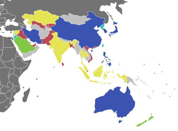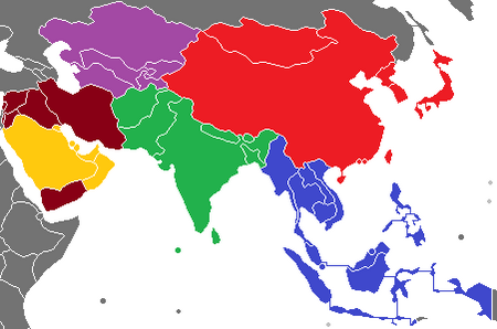 Участники из Азии разбиты на пять групп (по региональному принципу):
