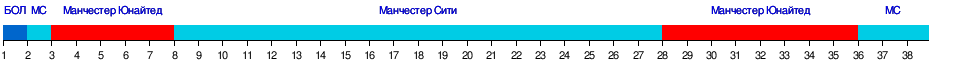 | Манчестер Сити | 1:0 | 4:1 | 3:0 | 2:0 | 4:0 | 3:1 | 3:2 | 3:0 | 1:0 | 5:1 | 3:1 | 3:3 | 3:0 | 4:0 | 3:2 | 3:0 | 3:0 | 2:1 | 2:0 | |