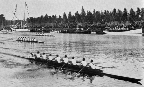 Это был первый раз, когда немецкая гребная Федерация отправила участников на Чемпионат Европы по академической гребле, и они сразу же добились успеха, выиграв в двух из пяти классов лодок (M1x and M8+).[3] Соревнование одиночек превратилось в фарс, и судья дважды потребовал перезапуска. Итальянский гребец Джузеппе Синигалья и русский гребец Анатолий Переселенцев, представлявший Францию были дисквалифицированы. В конечном итоге Полидор Вейрман перевернулся, и немецкий гребец Фридрих Граф был единственным, кто достиг финишной черты.[4]