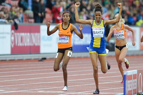 Финал в беге на 5000 метров у женщин состоялся 16 августа 2014 года (предварительный раунд был отменён из-за небольшого числа участниц). На дорожке в одном забеге сошлись две спортсменки, уже ставшие в Цюрихе чемпионками Европы: Сифан Хассан из Нидерландов, днём ранее выигравшая бег на 1500 метров, и британка Джоанн Пейви, первенствовавшая на более длинной 10-километровой дистанции. Большую часть забега участницы держались в общей группе при невысоком темпе бега. Первой за 800 метров до финиша увеличила скорость голландка Сюзан Кёйкен, вышедшая вперёд. На последнем круге на месте лидера её сменила урождённая эритрейка Мераф Бахта, выступающая за Швецию, а подтянувшиеся Хассан и россиянка Елена Коробкина дополнили квартет претендентов на медали. В упорном противостоянии с Хассан на финишной прямой золото выиграла более свежая Бахта, а бронзу — Кёйкен, опередившая Коробкину на считанные доли секунды[1].