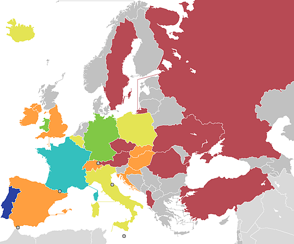 Уэльс — ранее не принимали чемпионаты Европы; сняли кандидатуру из-за финансового кризиса.